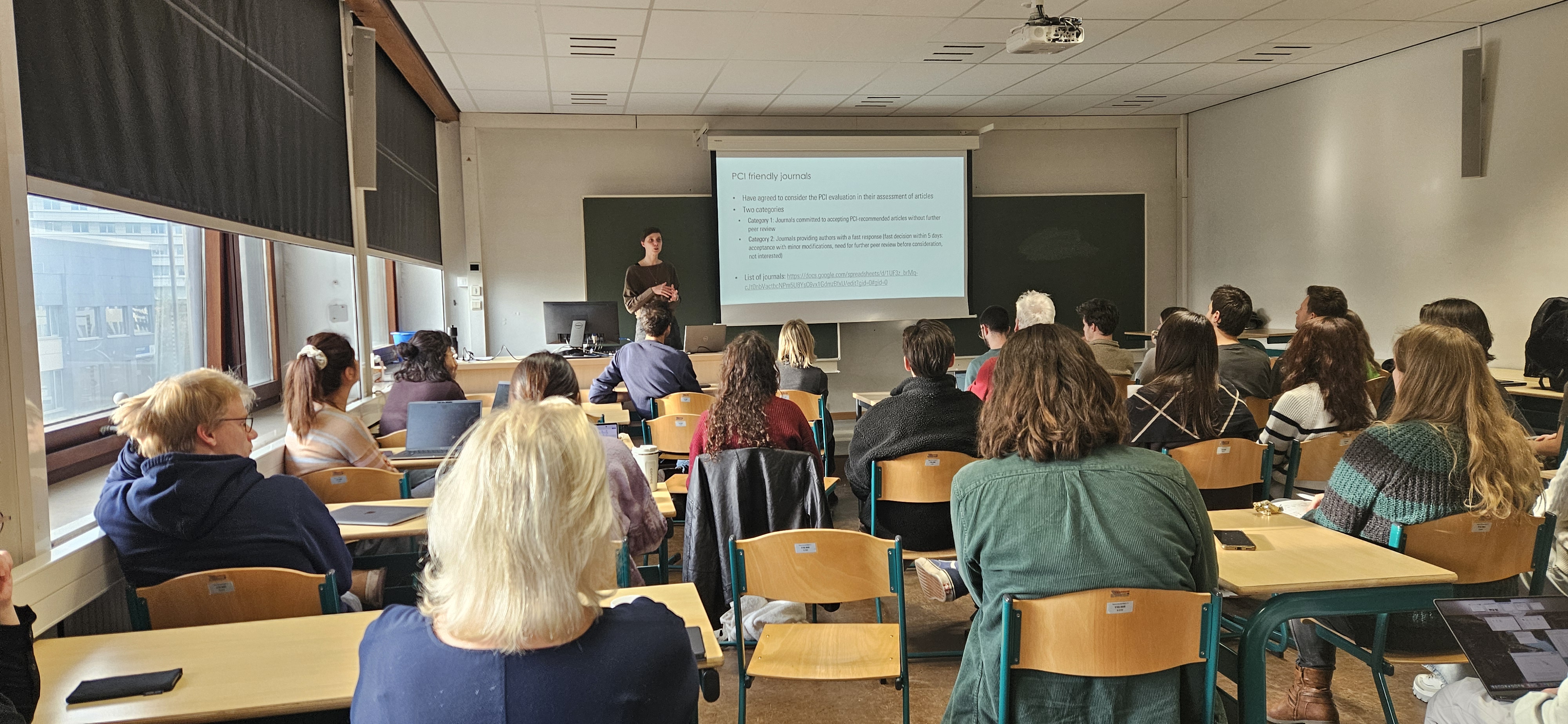The audience was highly engaged, leading to lively discussions that reflected both enthusiasm and critical reflection. Participants raised practical questions about time investment, review quality, and how preregistration fits within the realities of research assessment. Some noted that platforms like Peer Community In depend on the availability and expertise of recommenders and reviewers, which can vary across disciplines and occasionally slow down the process. Others wondered how preregistration interacts with the current publication system—where impact factor and open-access fees still play a major role. As Annick explained, preregistration isn’t an impediment: even if researchers aim for a traditional journal later, a PCI recommendation can accompany—and even strengthen—the submission.